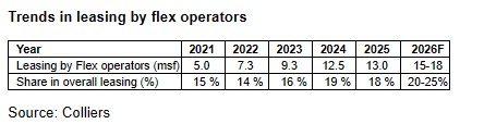 Flex operators can potentially account for 20-25% of Grade A office space demand in 2026