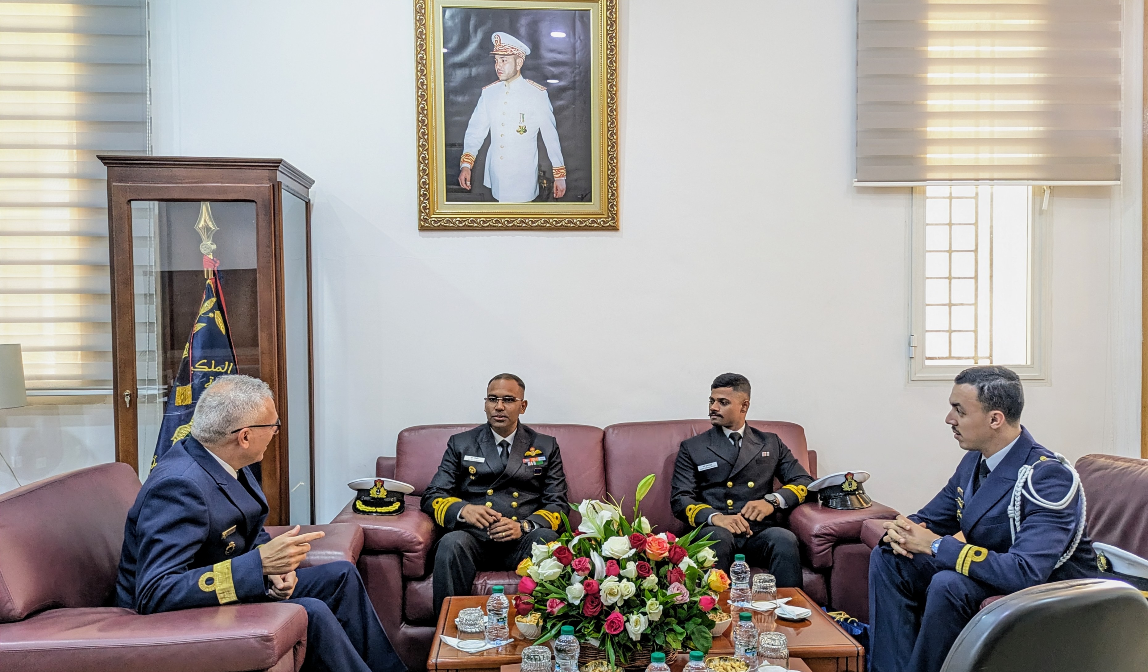 On arrival, the Commanding Officer of INS Sudarshini called on Cmde Hassan Akouli, Commander of the Central Maritime Sector, Moroccan Navy, and Cmde Omar Nasri, Director of the Royal Naval School, Morocco.