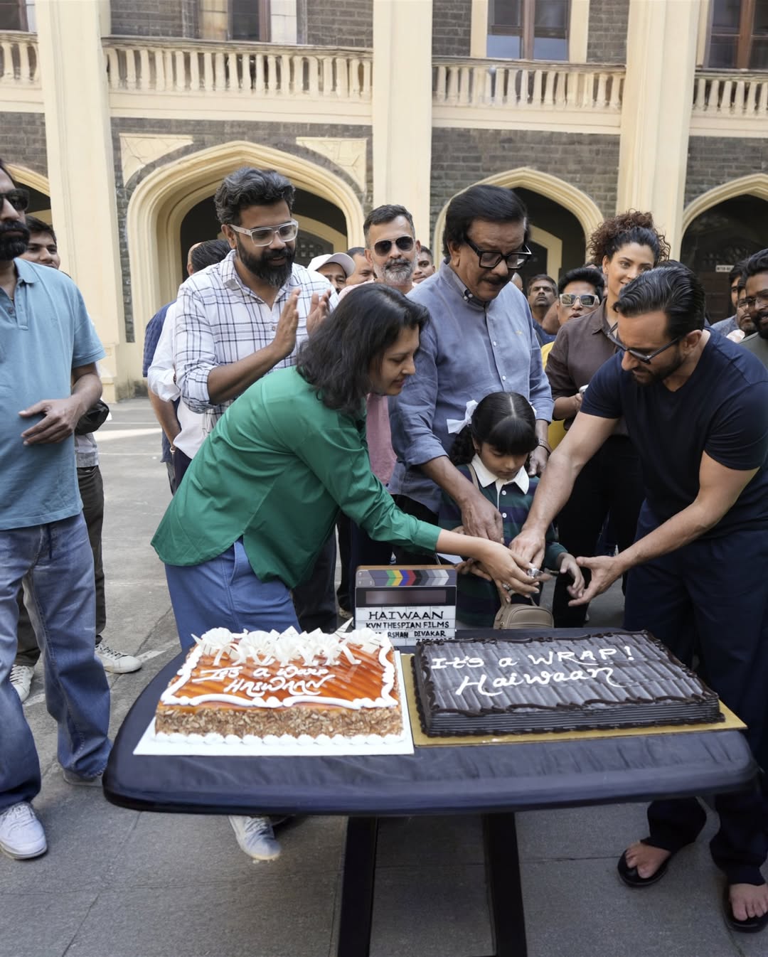 Taking to his Instagram handle, director Priyadarshan shared the photos from the shooting wrap-up celebration featuring actor Saif Ali Khan and the film's crew.