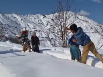 The tourists, especially the snow buffs who couldn't reach Patnitop due to road blockages, were seen enjoying the snow, and their children were playing snow games.