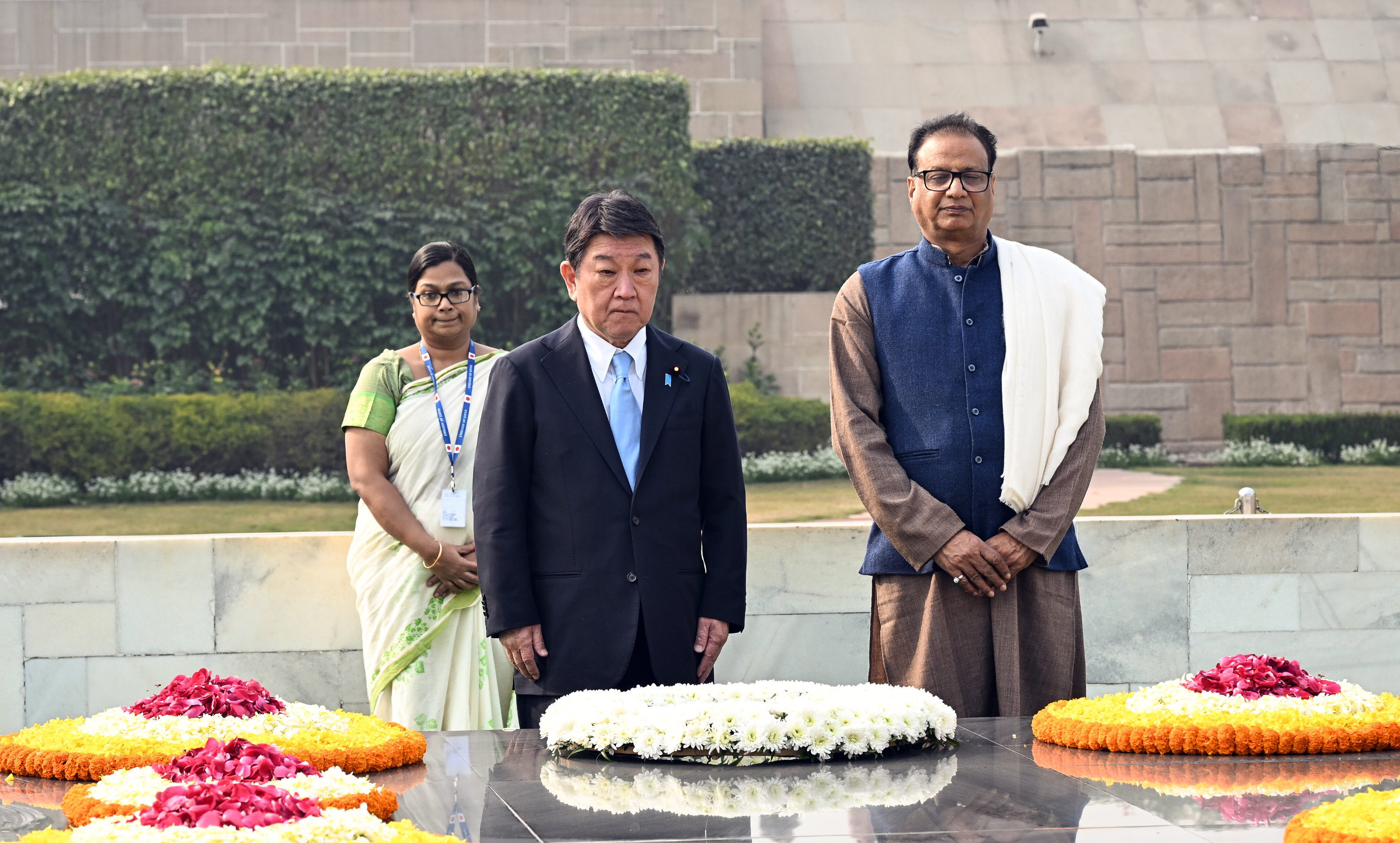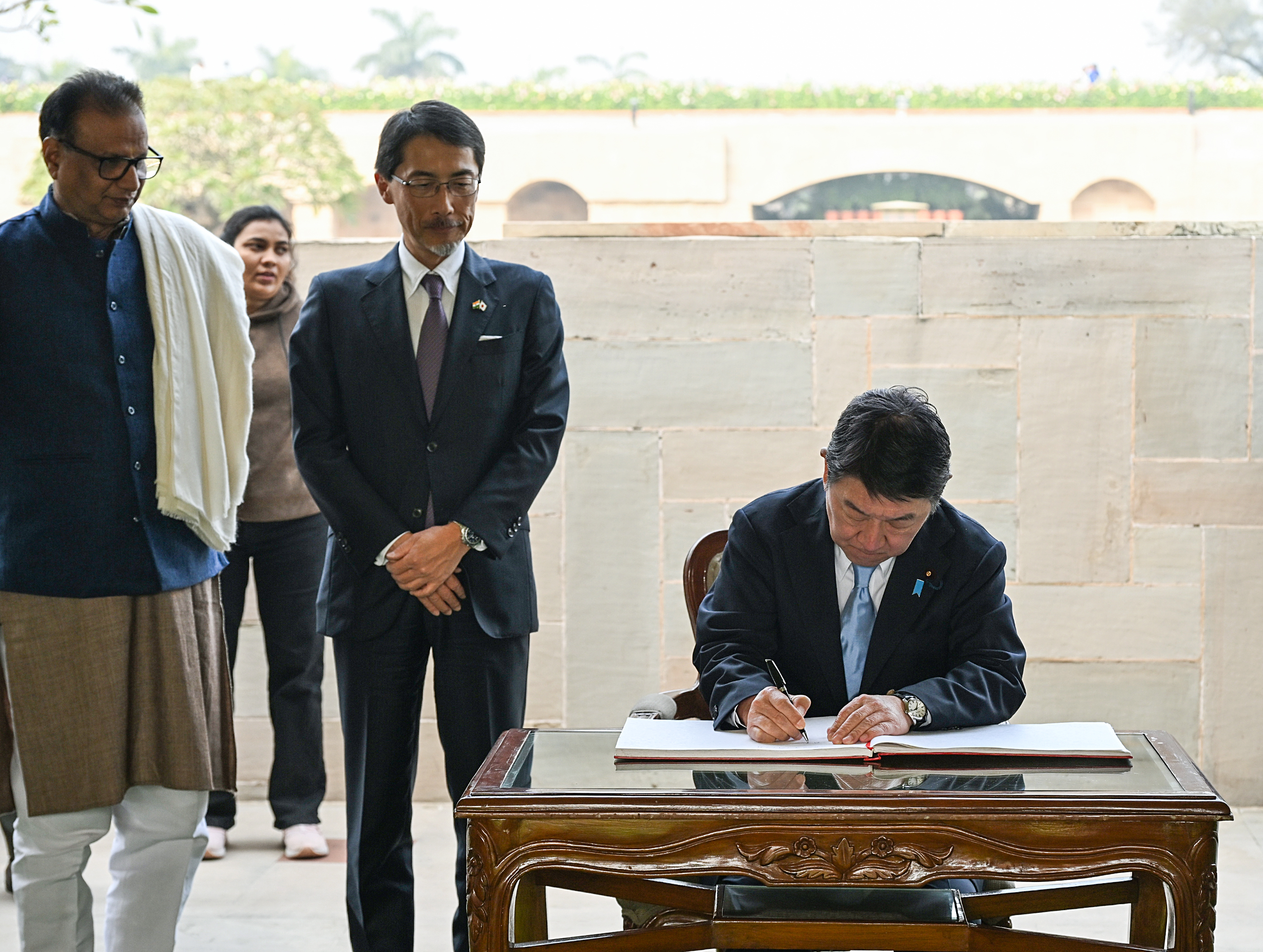 Japanese Foreign Minister Motegi on India visit pays tributes at Rajghat
