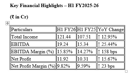 * Robust Order Book: Maintains strong revenue visibility with an outstanding order book of ₹286.21 Cr as of September 30, 2025.