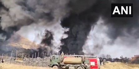 The fire took place at a location that is used by the Indian Army for firing practice. Thick plumes of smoke were seen billowing from the site.