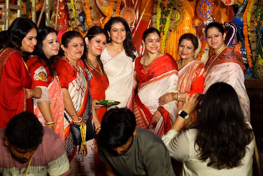In visuals from the pandal, Kajol could be seen taking part in the rituals, which includes applying 'sindoor' or vermillion to Goddess Durga and offering prayers before bidding farewell to the deity.