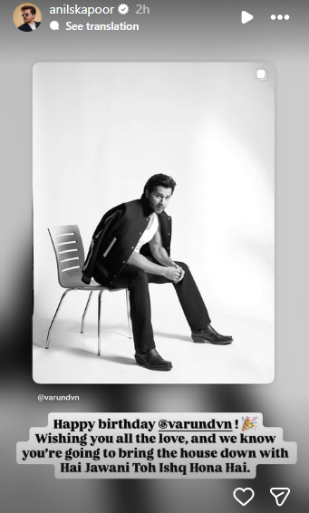 Actor Anil Kapoor also wished Varun and wrote, "Happy Birthday @varundvn! Wishing you all the love, and we know you're going to bring the house down with Hai Jawani Toh Ishq Hona Hai."