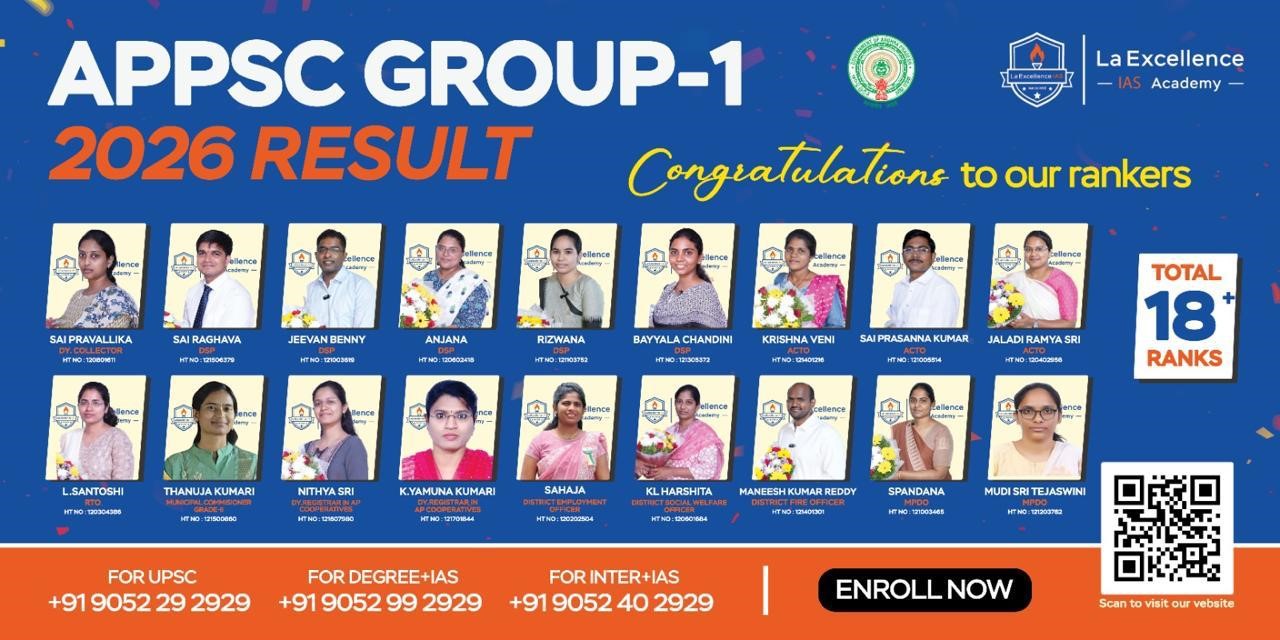 La Excellence IAS Academy Shines with Record 18 Selections in APPSC Group-I 2026 Results