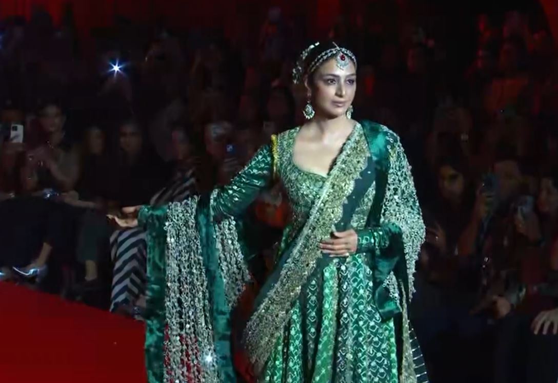 The actress ensemble featured intricate embroidery, shimmering zari details and hard work, which Tabu flaunted throughout her walk.