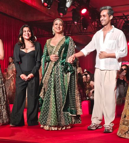 Being a showstopper for Lakme Salon X ITRH Collection, Tabu concluded her walk by arriving with designers Mohit Rai and Ridhi Bansal.