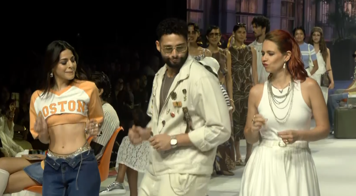 The show's energy was anchored by a star-studded lineup that blended 90's nostalgia with modern Gen Z trends. Bollywood actress Alaya F channelled a peppy-retro aesthetic in a citrine crop top and low-rise blue denims, while actress Kalki Koechlin opted for a minimalist, all-white ensemble featuring a sleeveless top and midi skirt.