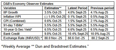 Mumbai (Maharashtra) [India], November 11: Dun & Bradstreet, a global leader in business decisioning data and analytics, has released its Economy Observer report for November 2025. Economy Observer is a monthly report sharing in-depth analysis of key macroeconomic developments in India and provides estimates for key economic indicators, and insight into the expected direction of the Indian economy.