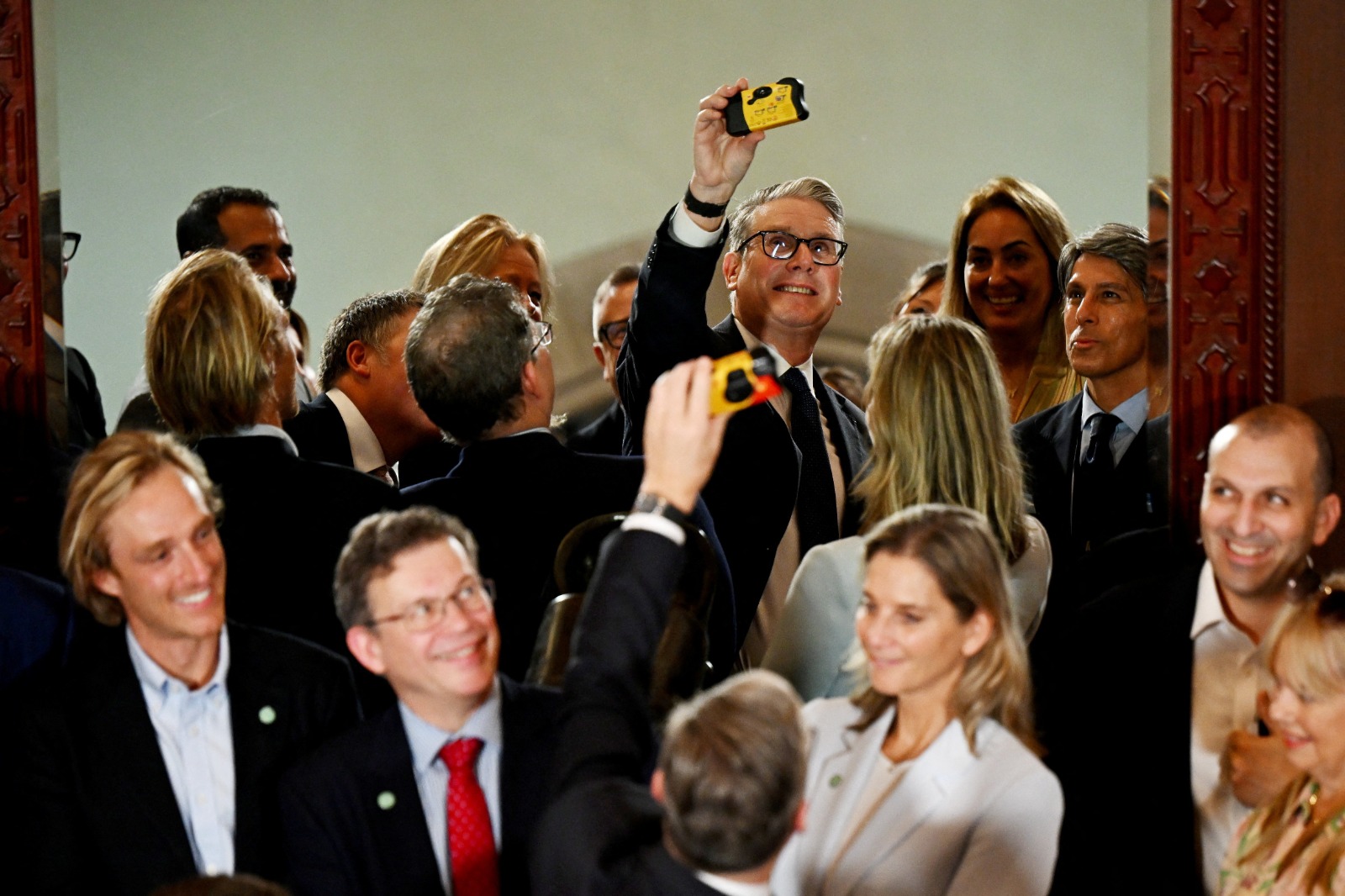 In a light-hearted moment, he was seen taking a selfie with a disposable camera during an interaction with business leaders at the Taj Mahal Palace in Mumbai.