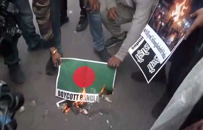 In a separate protest, members of Bangiyo Hindu Jagran and several other Hindu organisations also staged a protest near the Deputy High Commission of Bangladesh in Kolkata.