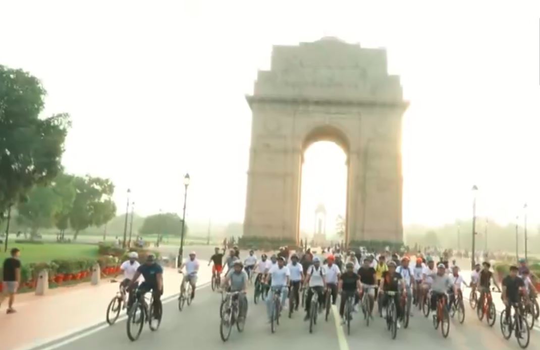 The minister, along with other participants, rode from Major Dhyanchand Stadium to India Gate.