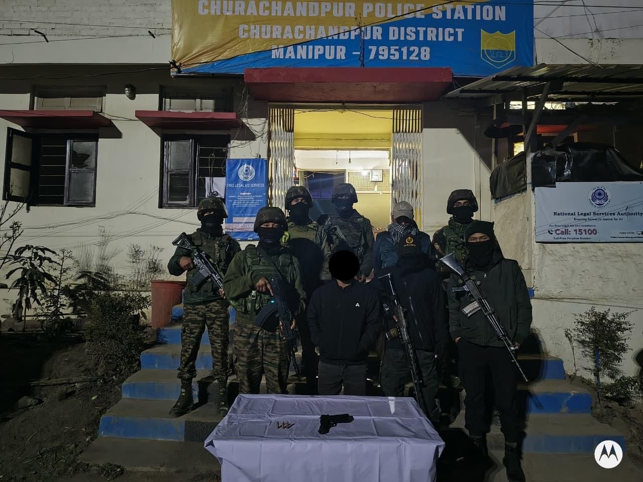 Meanwhile, the security forces also apprehended an active member of the United Kuki National Army (UKNA). Lunjakai Vaiphei (20) was arrested from the Matijang Village under the Churachandpur Police Station in Churachandpur district. The officials recovered a country-made 9 mm pistol with 03 (three live rounds from his possession.