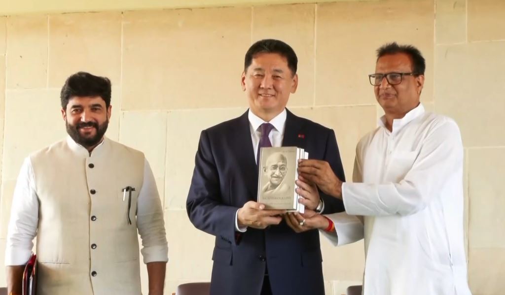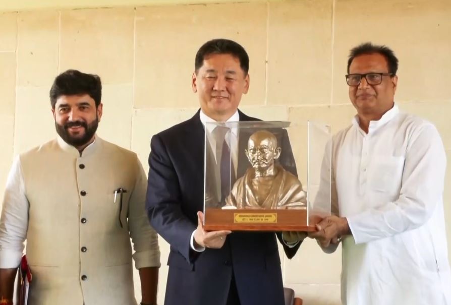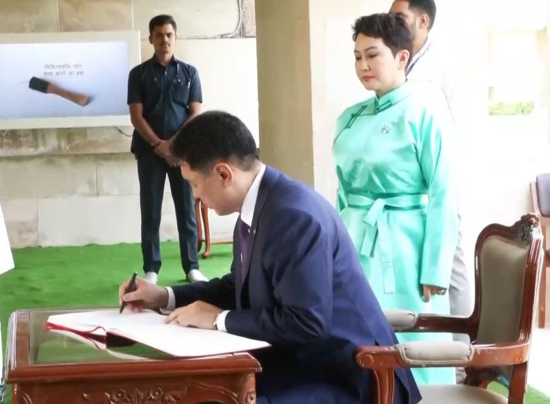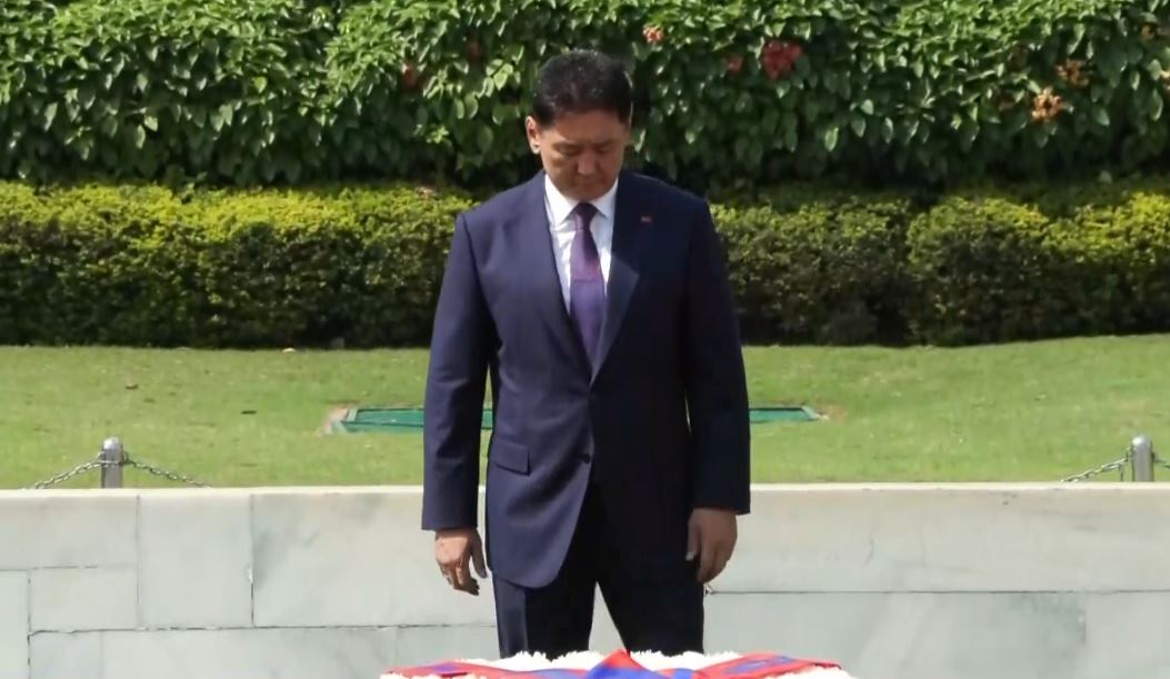 Mongolian President Khurelsukh Ukhnaa pays tributes at Rajghat