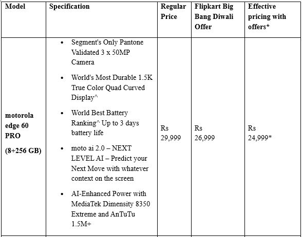 Motorola brightens Diwali with exciting offers on edge 60 PRO, edge 60 FUSION, g96 5G, g86 POWER & razr 60 during Flipkart's Big Bang Sale