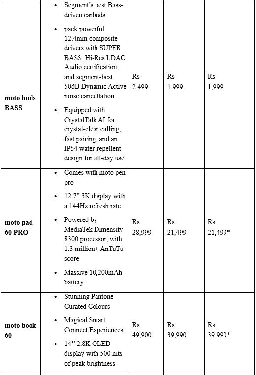 Tablet enthusiasts can get the powerful moto pad 60 PRO bundled with moto pen pro at Rs 21,499*, while the sleek and lightweight moto pad 60 NEO, the best tab under Rs 15K, is available at an incredible festive price of just Rs 12,999*.