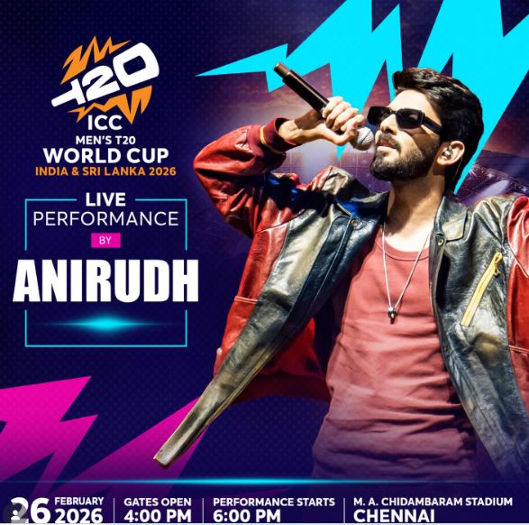 Sharing the update, ICC on Instagram wrote, "Get ready, Chennai! The one and only Anirudh is set to light up the iconic M.A. Chidambaram Stadium on 26 February in a grand celebration of the ICC Men's T20 World Cup 2026! One stage. One night. Thrilling vibes."