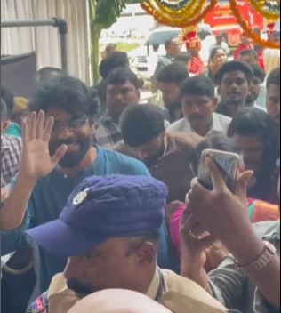 Nagarjuna, dressed in an ethnic kurta, was spotted greeting the audience with a smile.