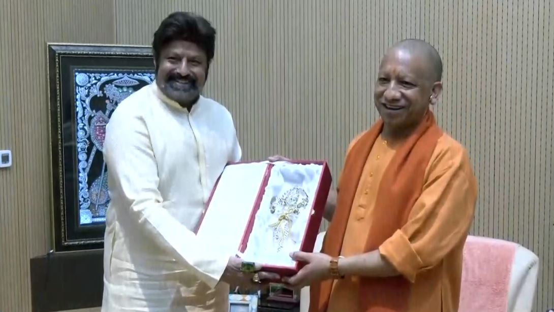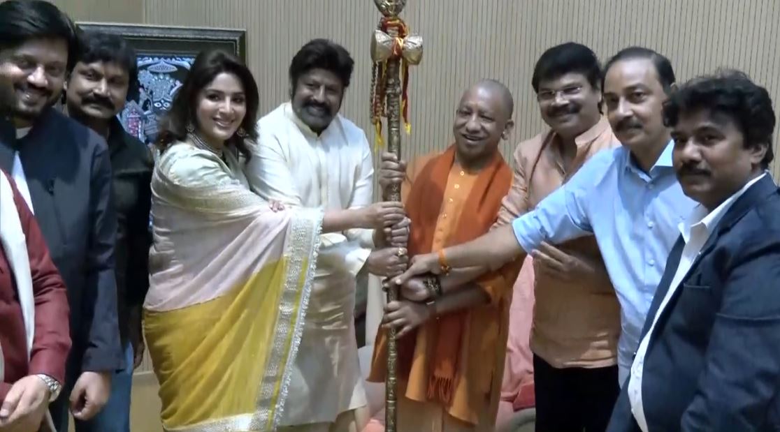 During the meeting at Yogi Adityanath's residence in Lucknow, Nandamuri Balakrishna posed with the UP Chief Minister with a holy trident, the weapon used by the actor in his upcoming film 'Akhanda 2'.
