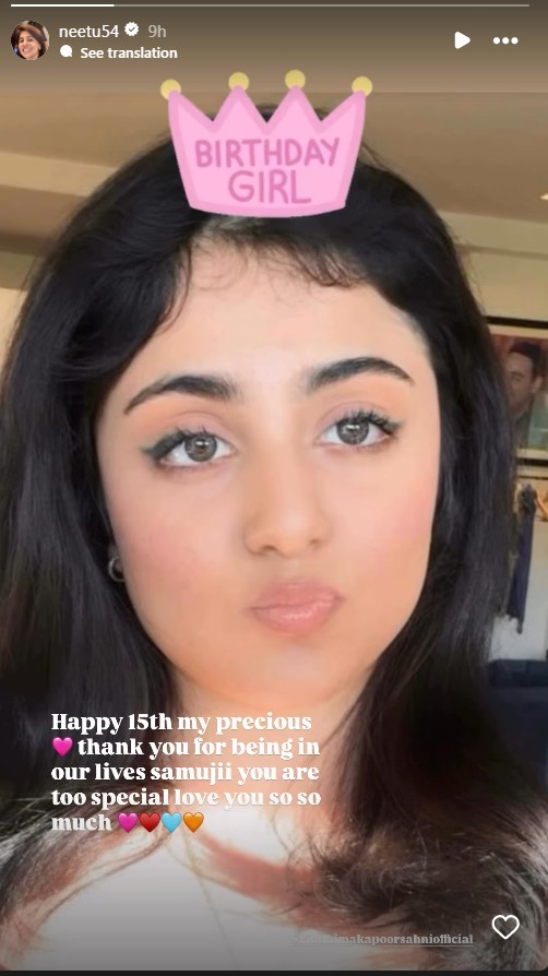 Veteran actor Neetu Kapoor took to Instagram story and penned a sweet message for her granddaughter Samara.
