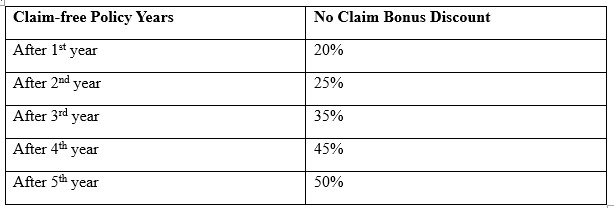 If you maintain zero claims for about 5 consecutive years, your discount can be 50%. The discount range may differ slightly from one insurance provider to another. So, you can use a no-claim bonus calculator from your insurer's website to calculate your accumulated NCB in car insurance.