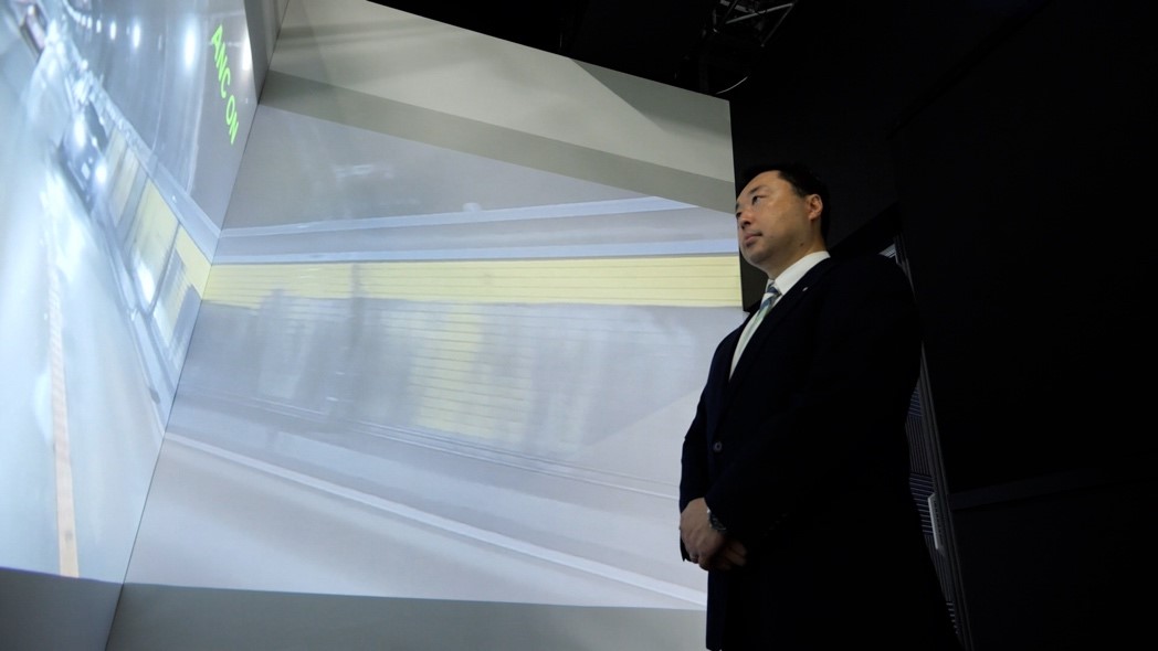 Yutaka Kamamoto, NTT said "I introduce noise cancelling technology in the airspace. Here I got a big noise but moving here noise is limited. Before noise is coming this technology can predict the kind of noise and reduce noise. Utilizing the technology to make airspace calm, NTT can reduce deafness risk".