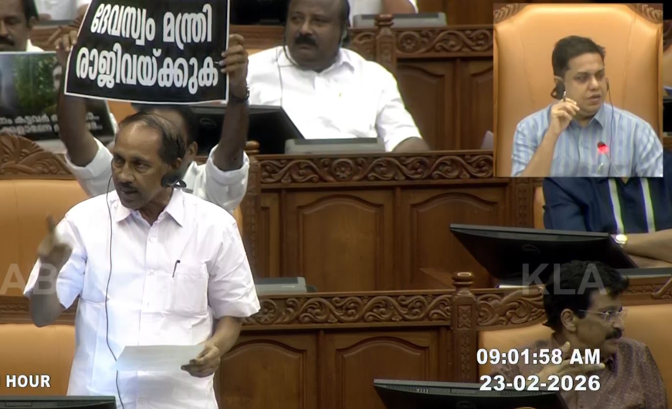 Opposition members held placards in the House calling for the resignation of the Devaswom Minister V. N. Vasavan alleging that the state government has failed to ensure a proper investigation.