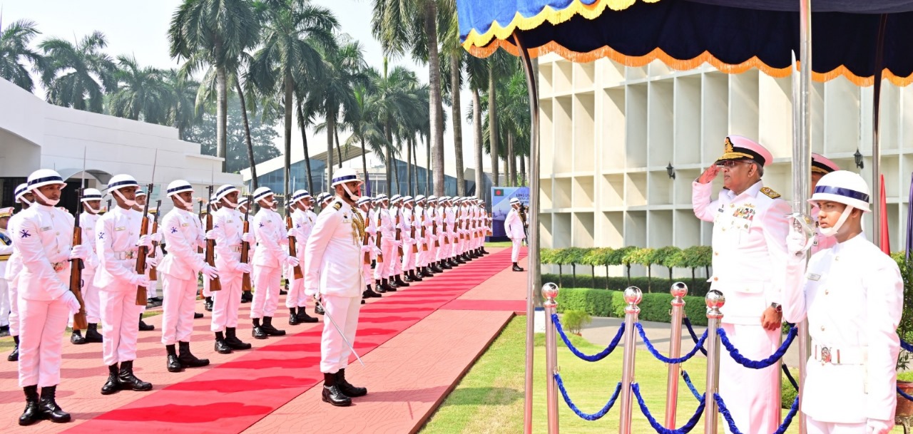 Earlier, when he arrived at the Naval Headquarters, he was welcomed by the Chief of the Navy. At that time, a well-equipped contingent of the Bangladesh Navy presented him with a Guard of Honour. He inspected the guard and received the salute, the Inter Services Public Relations (ISPR) said on Sunday in a statement.