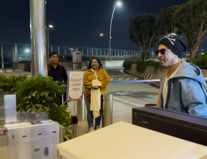 After handing back the passport with a nod and a smile, the 'Pathaan' star patted the official's arm before making his way inside.