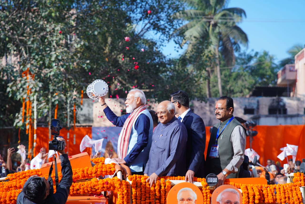 The Prime Minister waved to and acknowledged the huge crowd lining the road from Shankh Circle to Hamirsinh Circle. According to the official press release, "This grandest-ever Shaurya Yatra in Somnath's history also stood as a symbol of 'Ek Bharat, Shreshtha Bharat'."