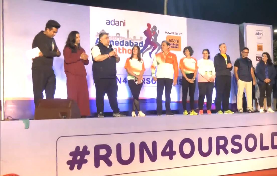 Ahmedabad (Gujarat) [India], November 30 : Pranav Adani, Managing Director of Adani Enterprises, actors Mandira Bedi and Preeti Jhangiani, along with other dignitaries, flagged off the marathon in Ahmedabad on Sunday. It was organised by the Adani Group and served as a tribute to the armed forces of India.