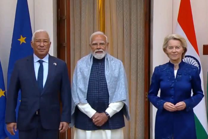 Prime Minister Narendra Modi meets EU leaders Ursula von der Leyen, Antonio Costa