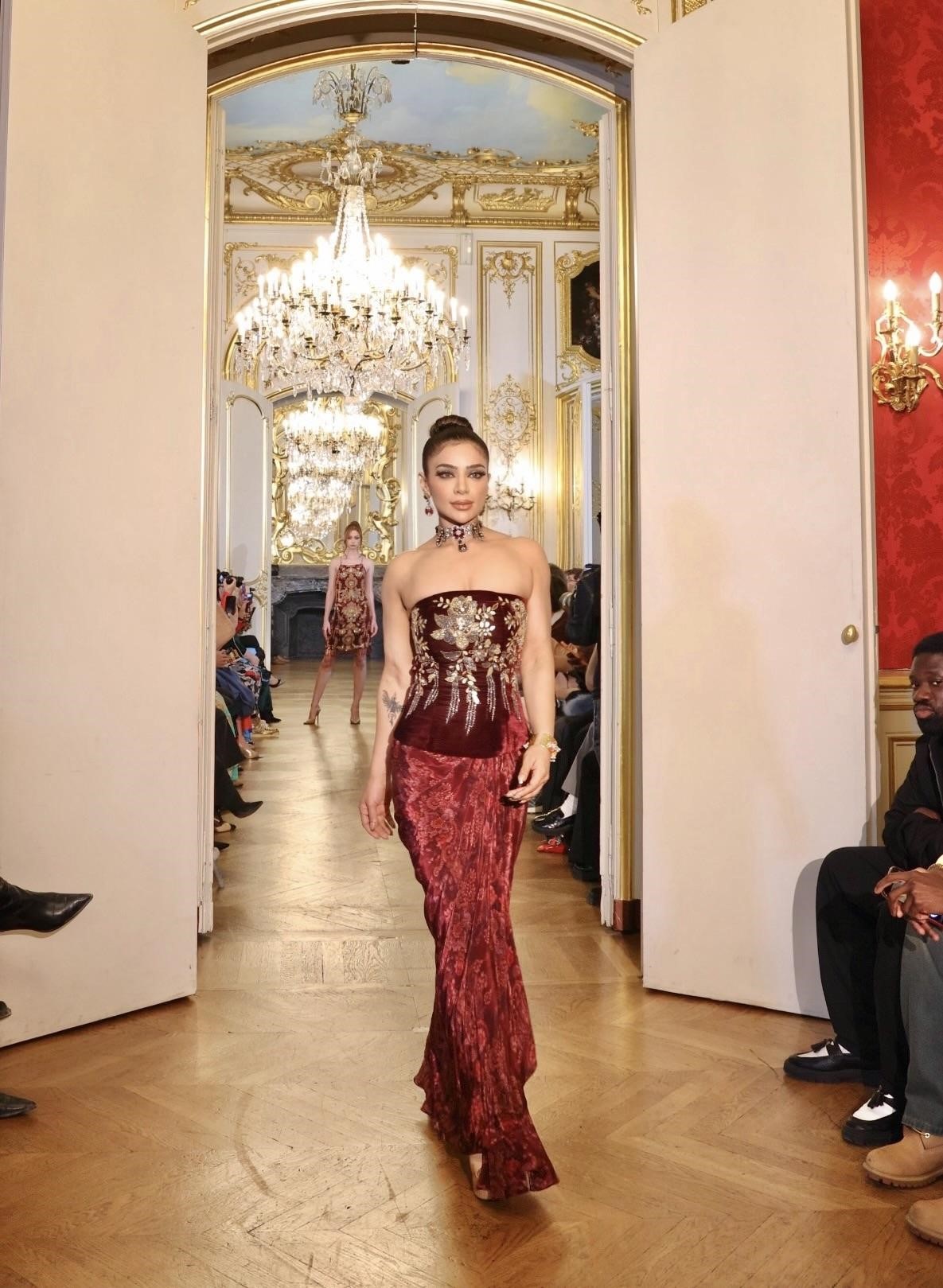 Elevating this fairy-tale arc is Priya's collaboration with FDCI Designer Member Charu Parashar, whose label fuses exotic Indian craftsmanship--like intricate ancient printing techniques--with romantic, sexy silhouettes. Charu's collections have already dazzled New York, Dubai, Toronto, and more. Now, Priya will command Paris and Milan Fashion Weeks in Charu's haute couture, showcasing flowing gowns that merge heritage motifs with luxury edge.