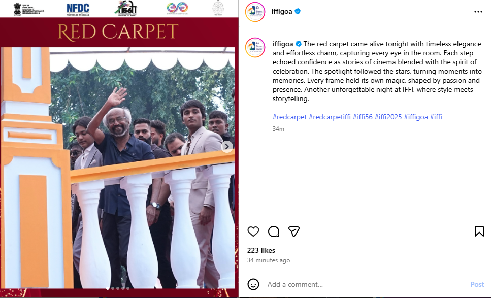 Notably, Rajinikanth is set to receive a special honour at the closing ceremony of IFFI as a tribute to his five-decade long cinematic journey.