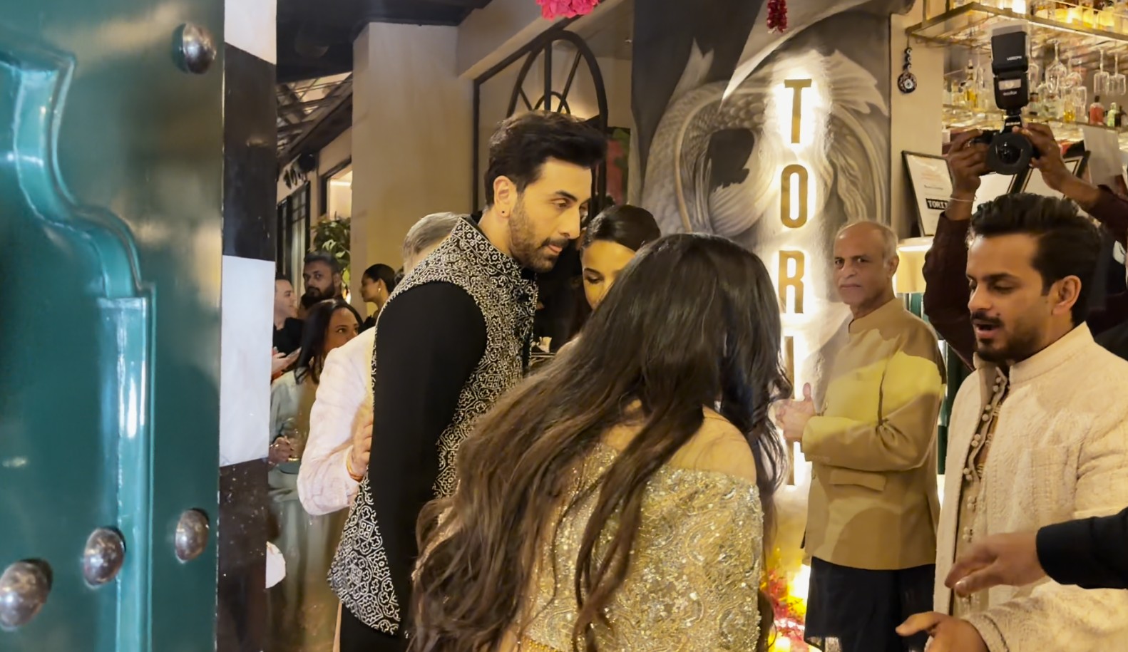 The two served major couple goals as they arrived at Gauri Khan's restaurant, Torii, hand in hand. The actors were spotted greeting paparazzi outside the venue.