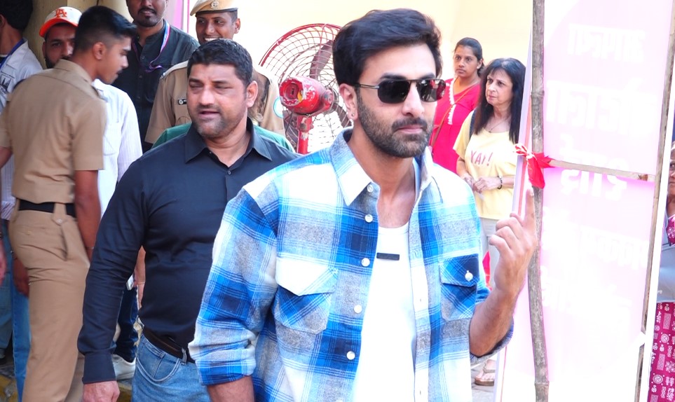 Ranbir Kapoor proudly flaunts his inked finger after casting vote