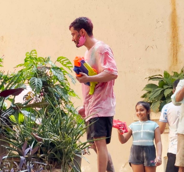The celebrations were not limited to just gulaal. Water fights, balloons and pichkaris added to the lively atmosphere as the group unleashed their inner child.