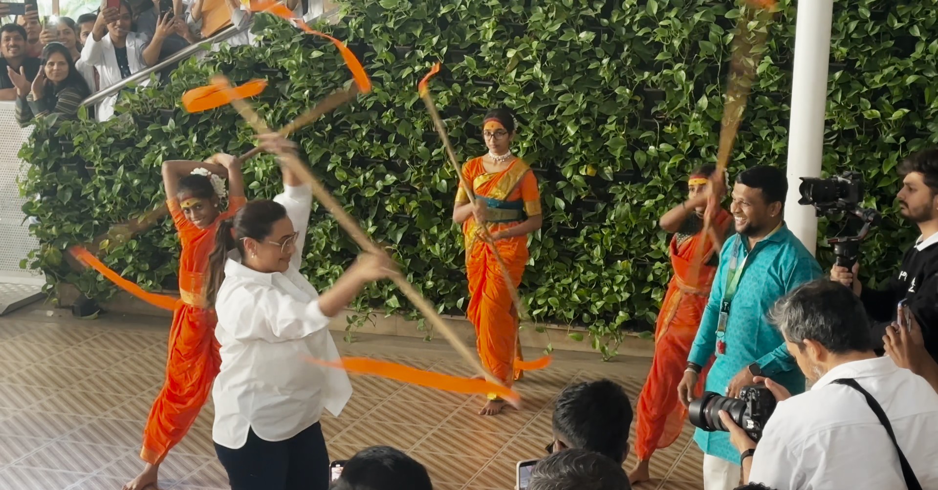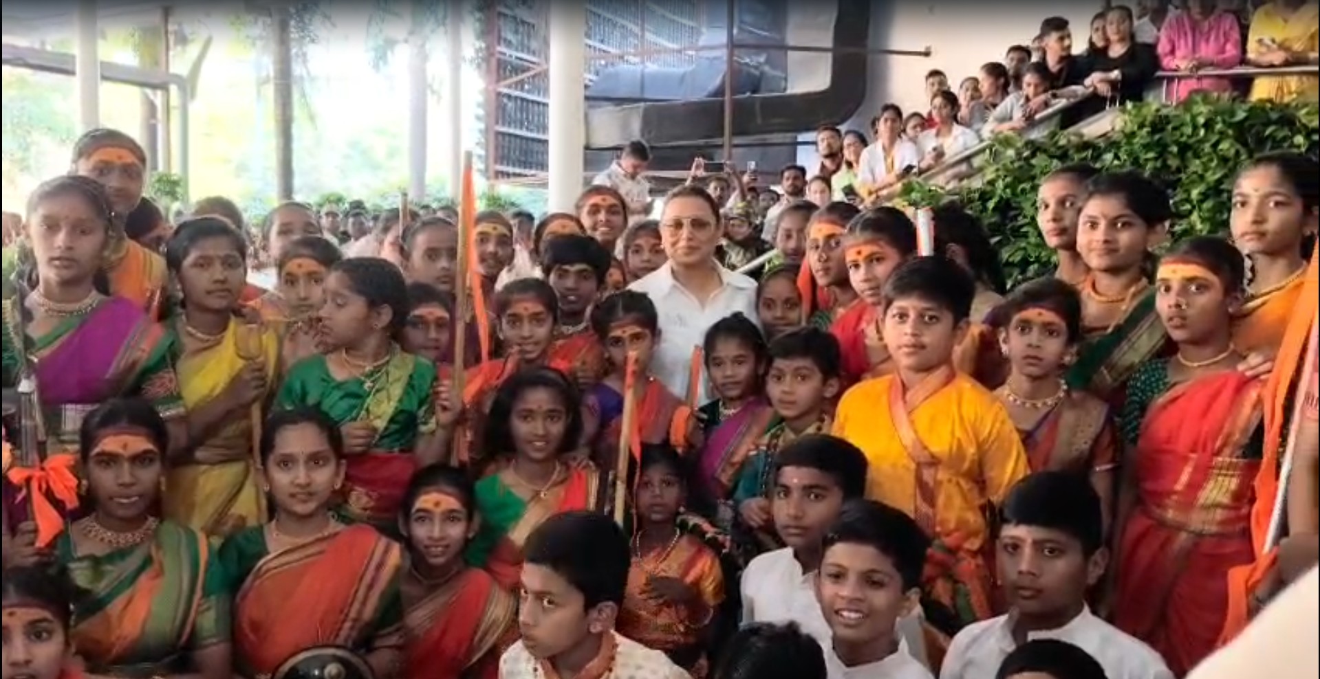 The actress had a greet-and-meet session with her young fans at DY Patil Medical College, who were dressed in traditional attire. The girls wore saffron sarees while holding bamboo sticks and a shield, symbolising the bravery and empowerment of women in today's world.
