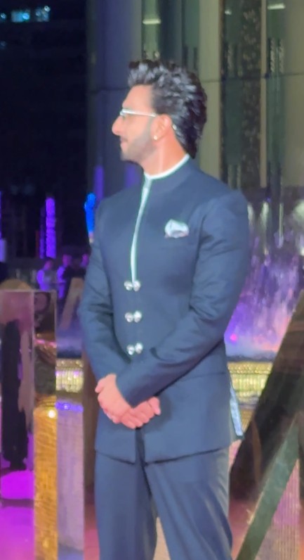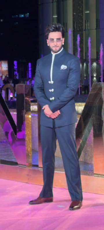 He looked dapper in what apeared to be a bandhgala suit. A light-colored pocket square added a subtle touch of sophistication to his outfit.