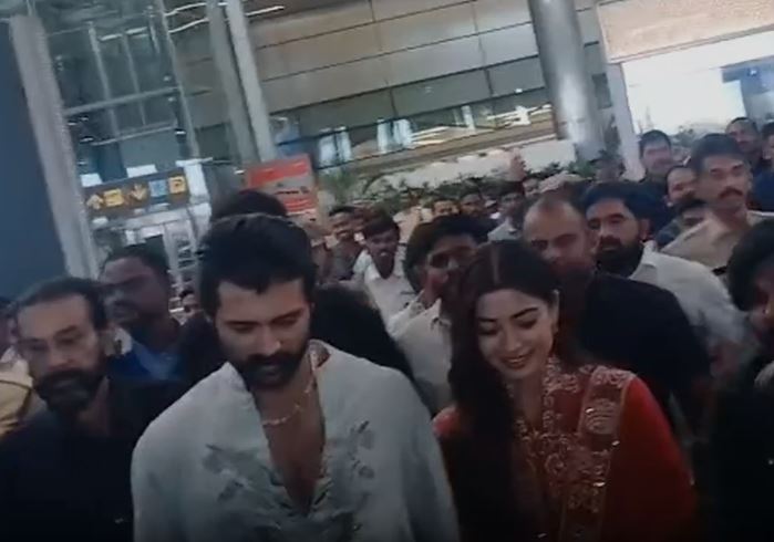 Fans in large numbers gathered at the airport, cheering to welcome the lovebirds. Dressed elegantly in traditional outfits, Vijay and Rashmika shared smiles and waves. They were also accompanied by their family members, who also returned to Hyderabad after the wedding festivities.