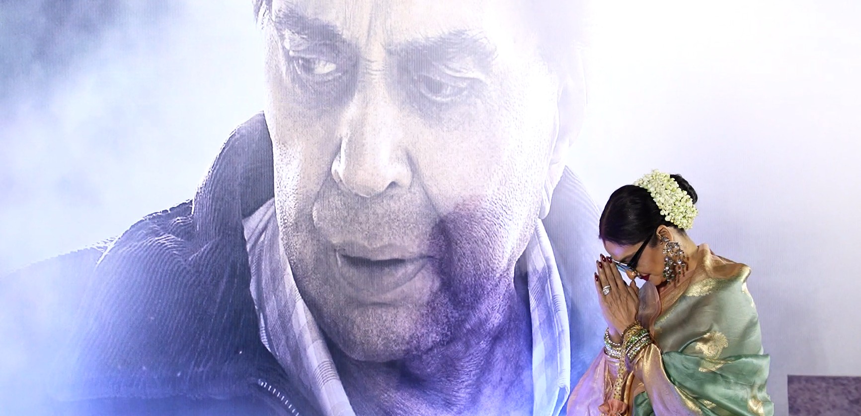 On the red carpet, Rekha paused to gaze at a poster of the late actor Dharmendra, standing in quiet reverence for a few moments with folded hands and a bowed head. She then moved to Agastya's photo, placing her hand gently on it and blowing a flying kiss as a blessing.