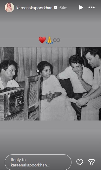 After learning about the demise of Asha Bhosle on Sunday, actor Kareena Kapoor Khan walked down memory lane and dug out a priceless picture of her grandfather Raj Kapoor with India's melody queen.