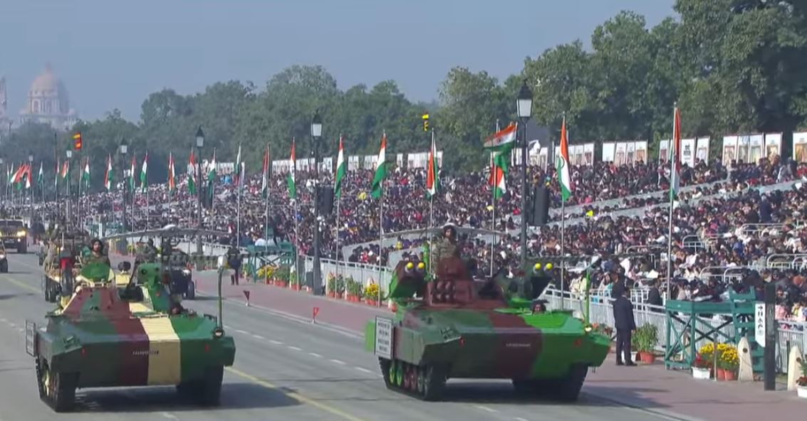 Mechanised infantry strength was represented by the BMP-II Infantry Combat Vehicle, led by Captain Akshay Kumar Bali of 2 GUARDS. Equipped with a 30-mm automatic cannon, 7.62-mm PKT machine gun, Konkurs anti-tank guided missile, and upgraded Thermal Imaging Sight Kits, the BMP-II can engage targets up to four kilometres at night and operates efficiently across deserts, plains, and high-altitude regions.