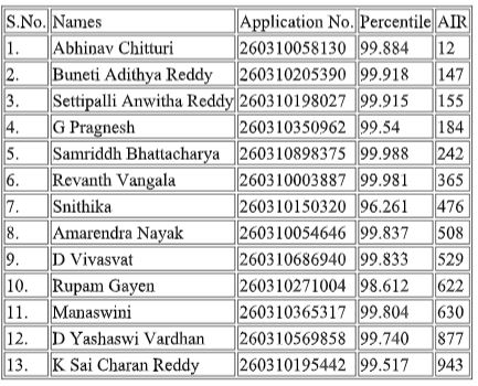 Top Rankers Below 1000 in the Open Category & Their Respective Categories: