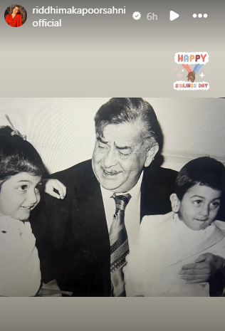 Riddhima Kapoor drops rare childhood picture with Ranbir Kapoor, grandfather Raj Kapoor on Siblings Day