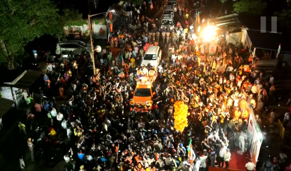 Paschim Bardhaman (West Bengal) [India], April 13 : As Union Home Minister Amit Shah continues his relentless election campaign in West Bengal, he on Monday held a massive roadshow in Durgapur of Paschim Bardhaman district.