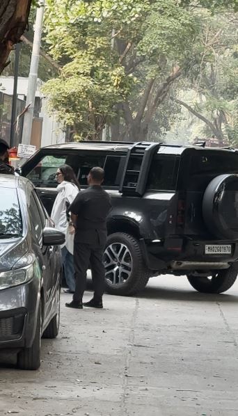 Karisma Kapoor, dressed in white, was also seen entering the actor's residence. She was joined by Kunal Kapoor.