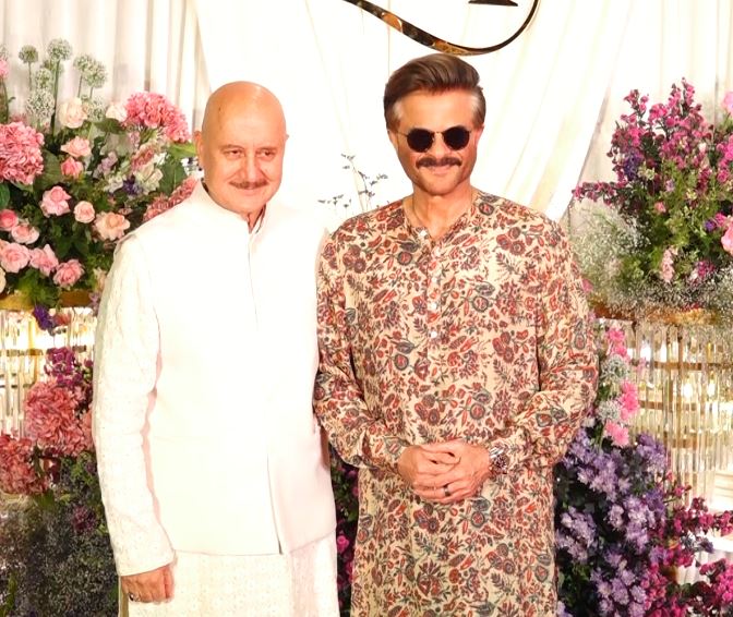 Actors Anil Kapoor and Anupam Kher arrived together to join the Barjatya family.