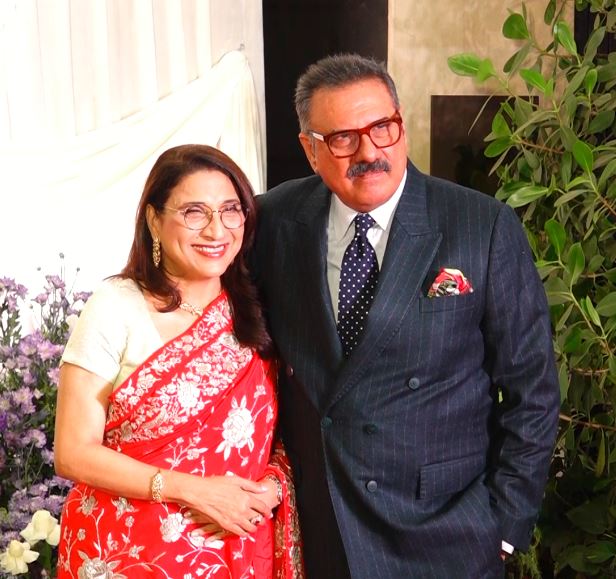 Barjatya was dressed in a classic black suit. While his daughter Eesha chose a shimmery saree, her husband was seen in a dark blue suit paired with a red tie.